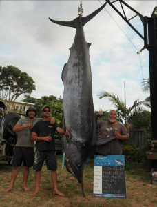 In Portuguese, we have a saying “nao a duas sem tres” (there´s no second without a third time) and truth to it Capt. John Giford and angler Wade Wilson caught a 1 027 lbs Blue in New Zealand a few days later. Amazingly this marked the third grander of the year, once AGAIN caught on a small outboard powered trailer boat.