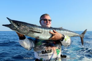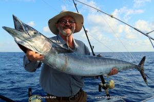 The wahoo have arrived in Vilankulos / Bazaruto early but in big numbers and good sizes. The wahoo run should last up until September, peaking in July the las two years…But, the next day the boys aboard Veleiro started with a BANG with a very special early morning plugging session. They found the big GT´s feeding like mad and managed to release three really good fish, the best at over 30 kg´s. Later in the day they also had good action catching school cuda on the live carapau right on the back line. They finished the day plugging where they started and again had some good action, and despite no big GT´s they got a real nice yellowspotted kingfish.