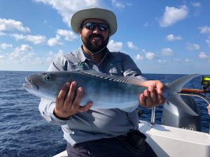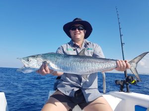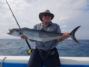 The boys fishing with Morgan also had some action albeit a tad quieter on the jigging and popping, but they did get some small cuda on the live carapau along with a few bludger and yellowspotted kingfish, a couple green jobfish and some other species.