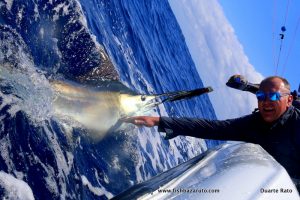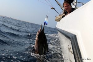 Pity weather was to sporty and could not take Duarte Jnr. out. He was so keen and sad not to get out it was heartbreaking. He did fish all day long in front of Clube Naval on the spinning gear. One thousand casts. No fish. The patience he has for fishing as to be seen to be believed. He did get a few lessons on the real deal as well 😉