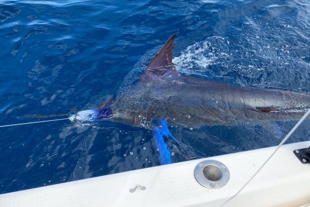 Catching your first marlin with Captain Duarte Rato – this time it stuck and Doug brought in his first Marlin ever at #250.