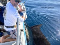 Seeing this, Courtenay asked if we could bring the heavy gear the next day and put them out for a few hours. So, we did on our last day, pulled the lures on the heavy gear for a few hours and caught a nice YFT and then had a real nice Black take the short corner lure. Unfortunately seconds after Courtenay got in the chair, with the fish peeling 200 yards of line in a flash, the hook came undone!